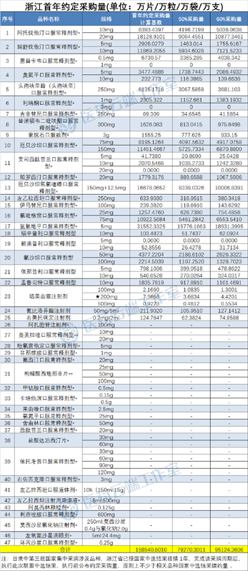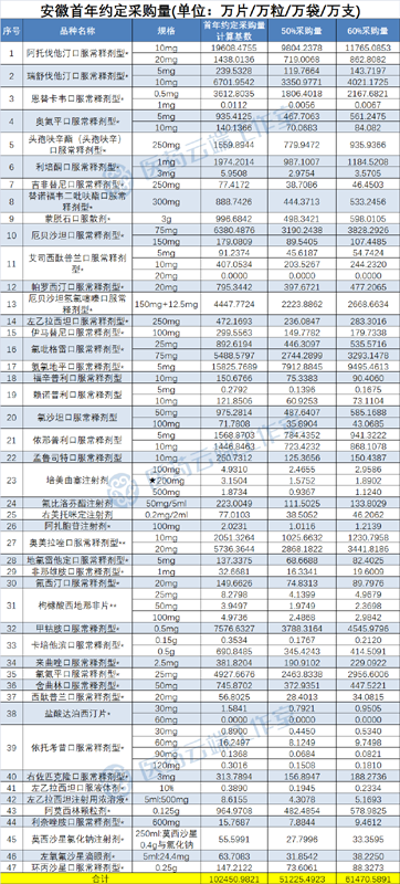 約定采購(gòu)量:各品種首年約定采購(gòu)量按以下規(guī)則確定:實(shí)際中選企業(yè)為該地國(guó)家集采同品種中選企業(yè)的,為首年約定采購(gòu)量計(jì)算基數(shù)的60%;抗菌藥物,以及實(shí)際中選企業(yè)非該地國(guó)家集采同品種中選企業(yè)的,為首年約定采購(gòu)量計(jì)算基數(shù)的50%。各省采購(gòu)量具體詳見(jiàn)文末附表。